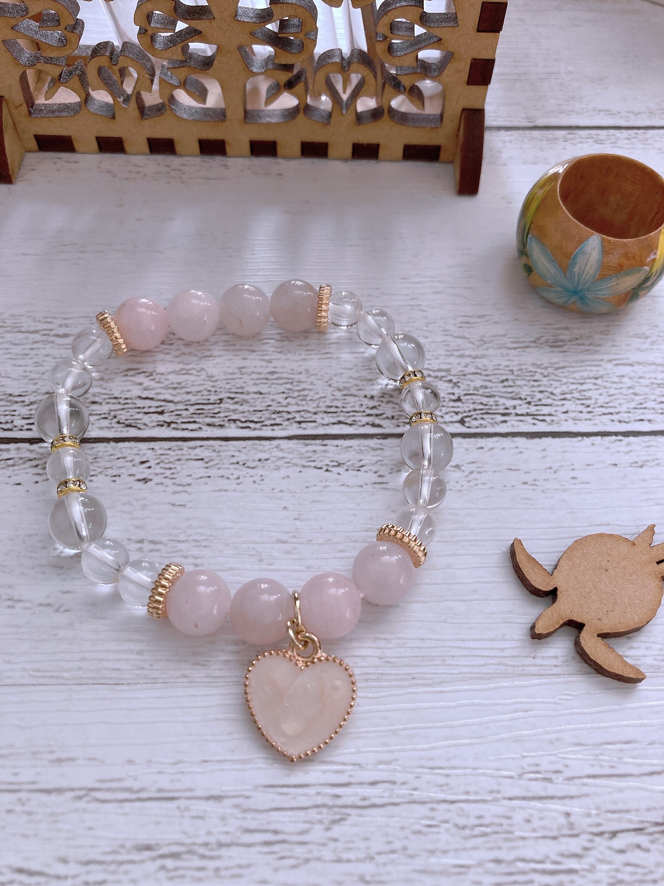 ローズクォーツ、水晶のブレスレットです。