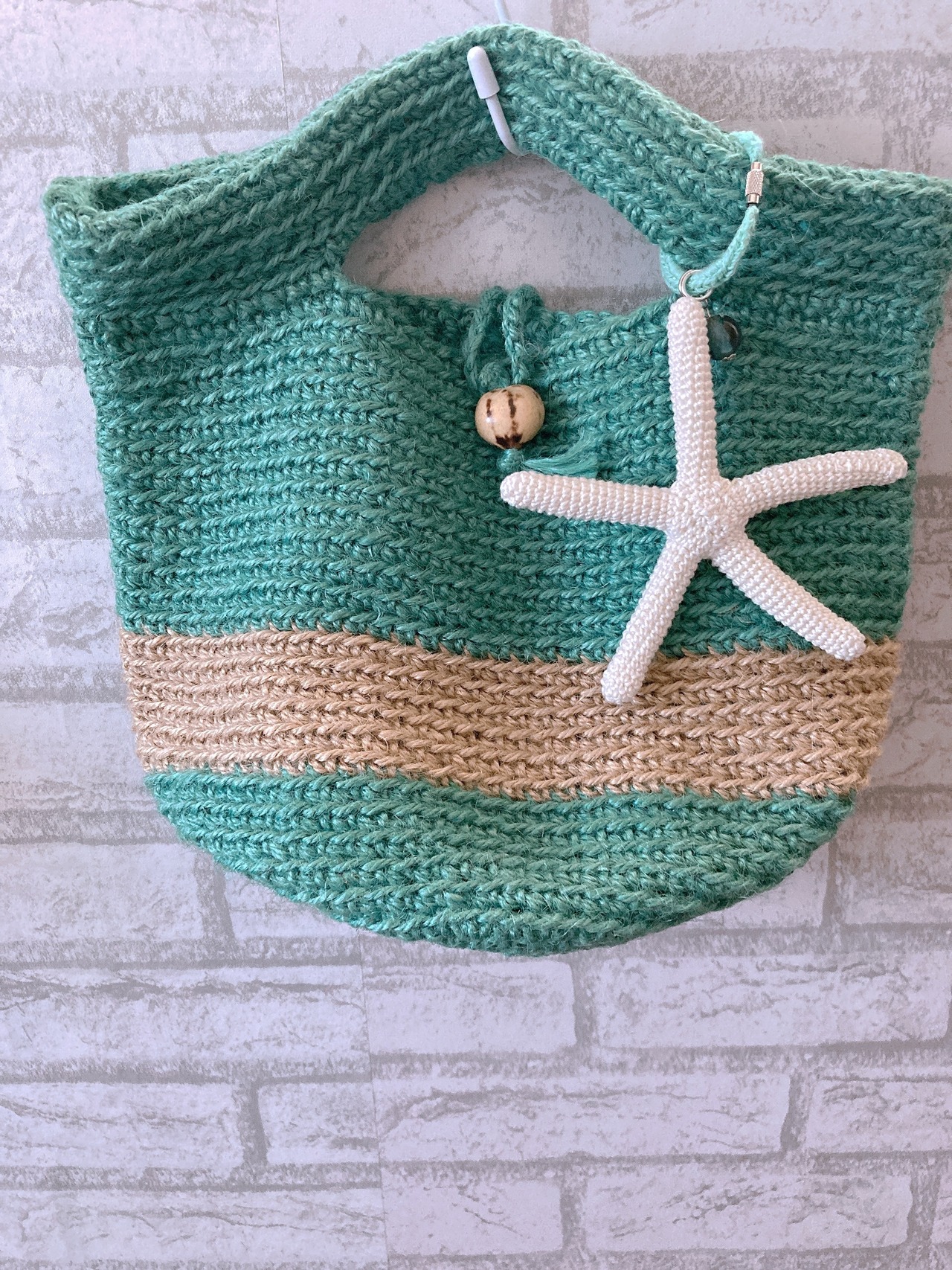 レース糸で編んだスターフィッシュのチャーム付きです♪