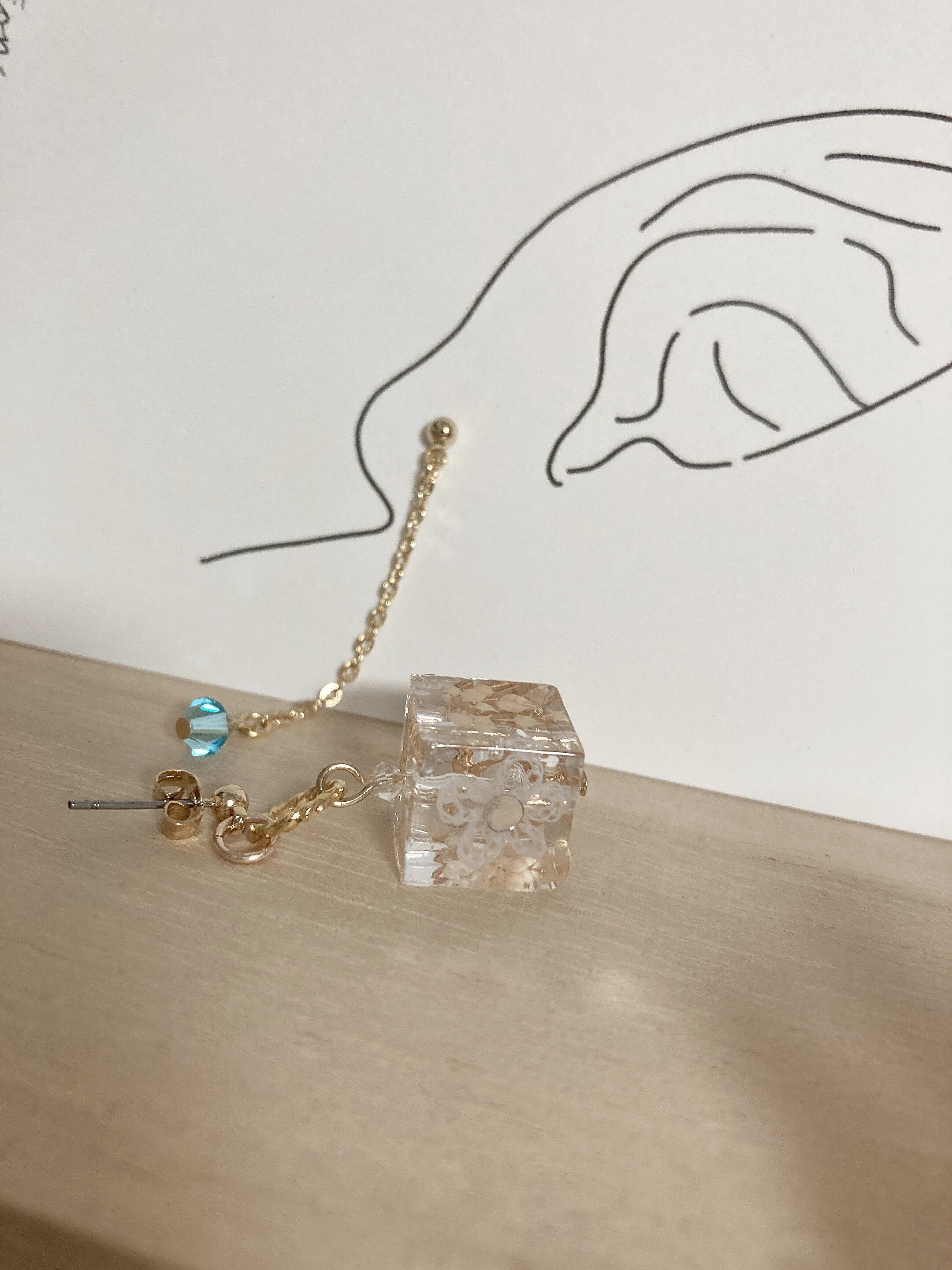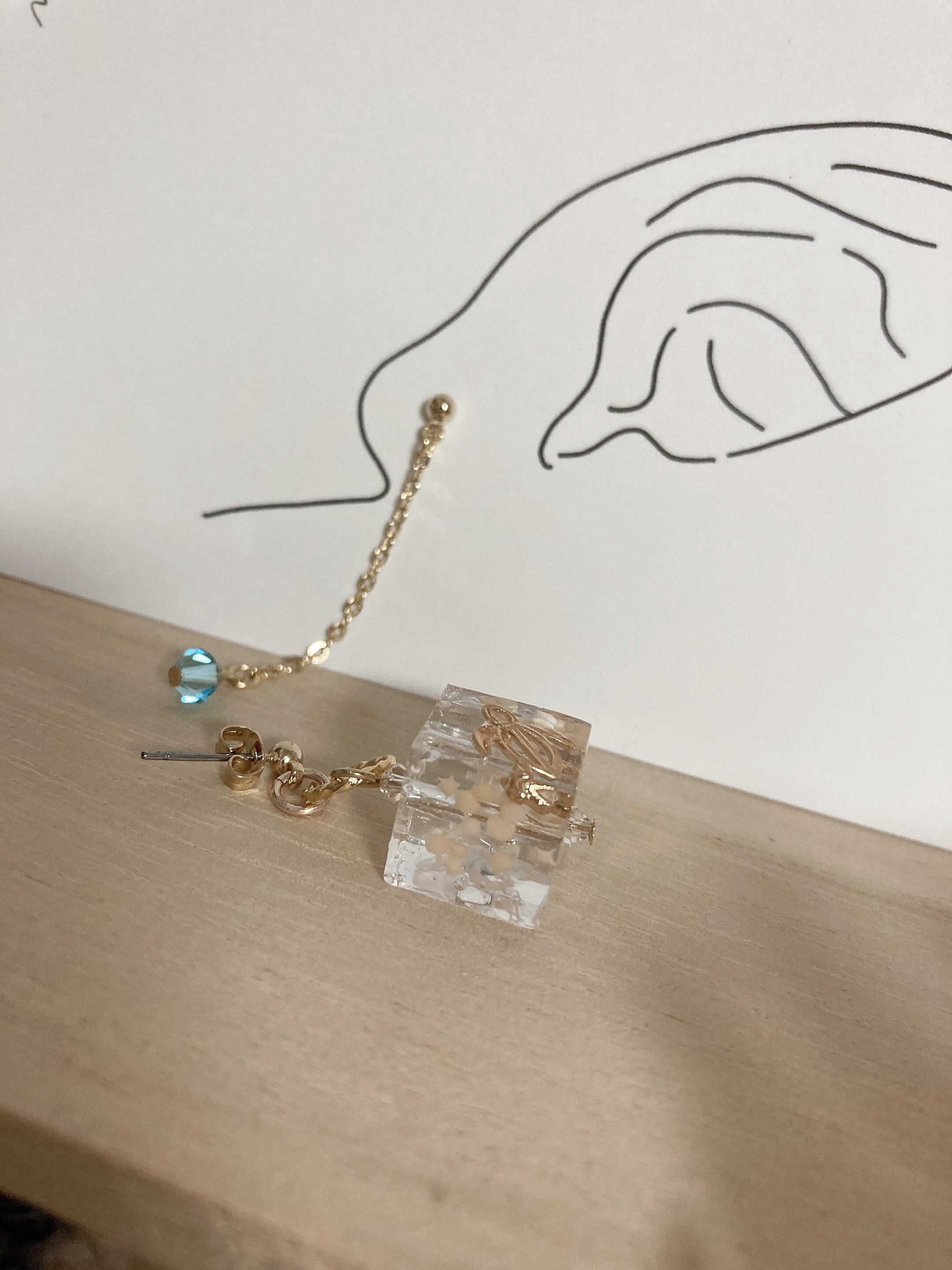 もう片方はチェーンにアクアマリンカラーのスワロフスキーが付いてます。