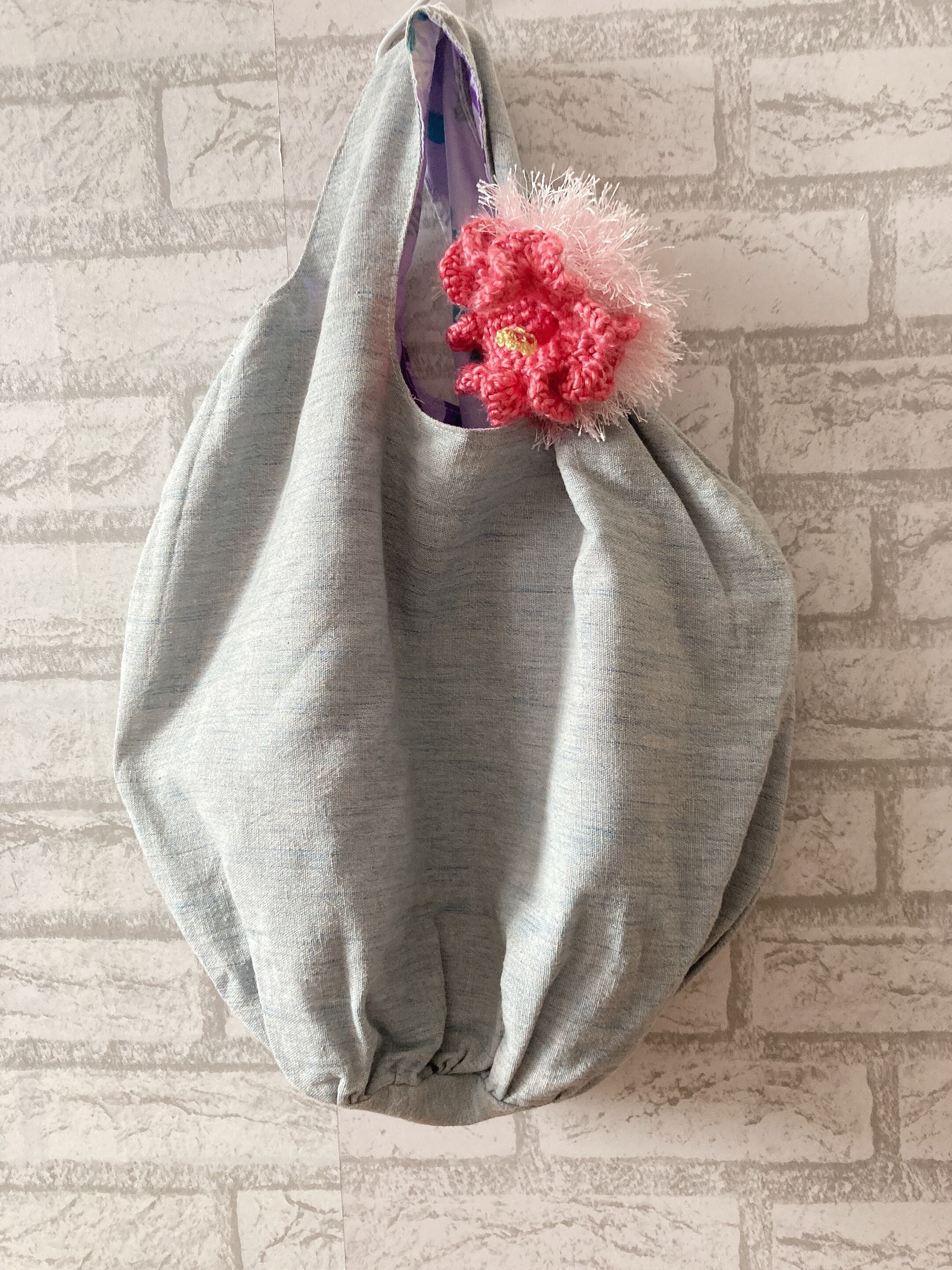 コロっとしたエコバッグです。ハイビスカスのシュシュも付いてます^ ^