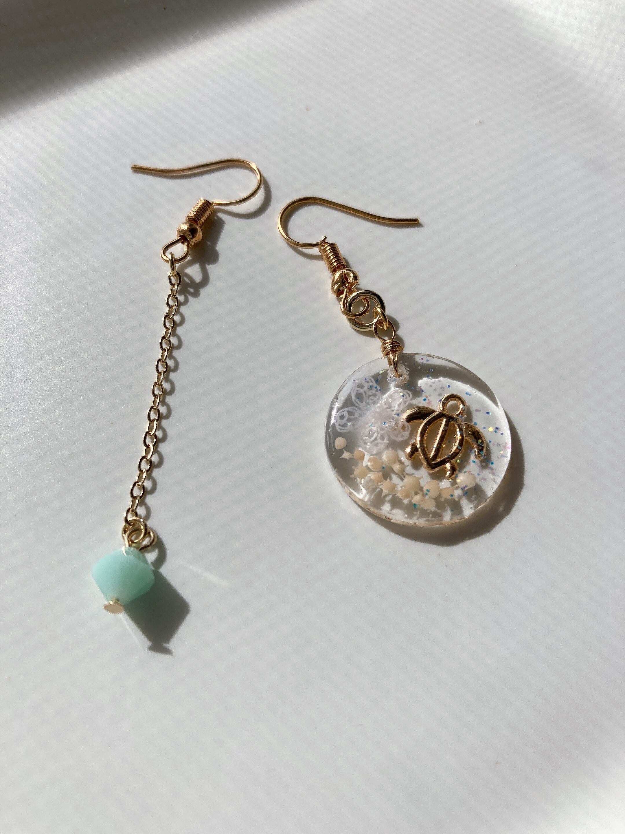 もう片方はちょっと長めのチェーンにビーズが付いてます。