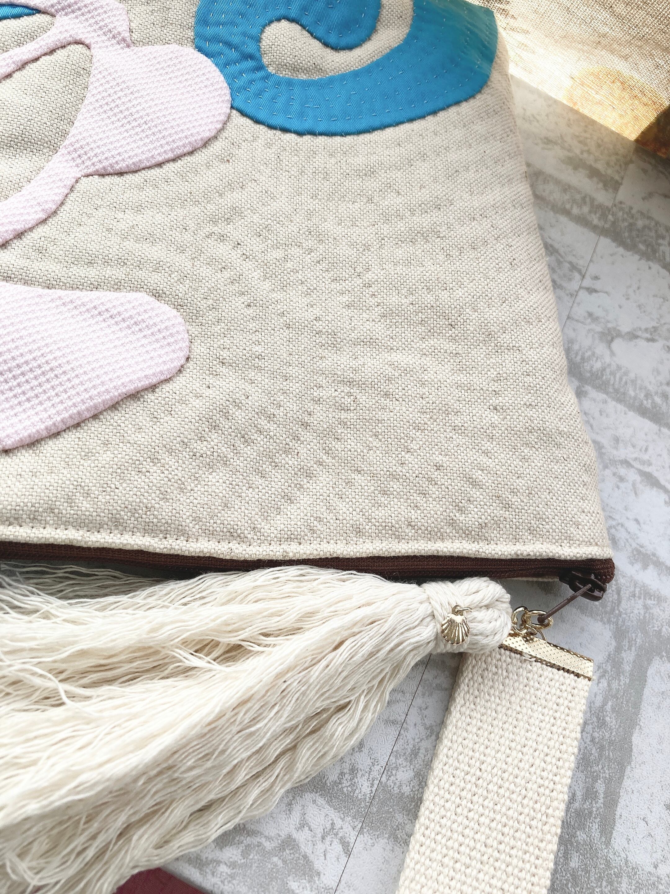 ハワイアンキルトの少し大きめポーチ(ピンクホヌ柄)