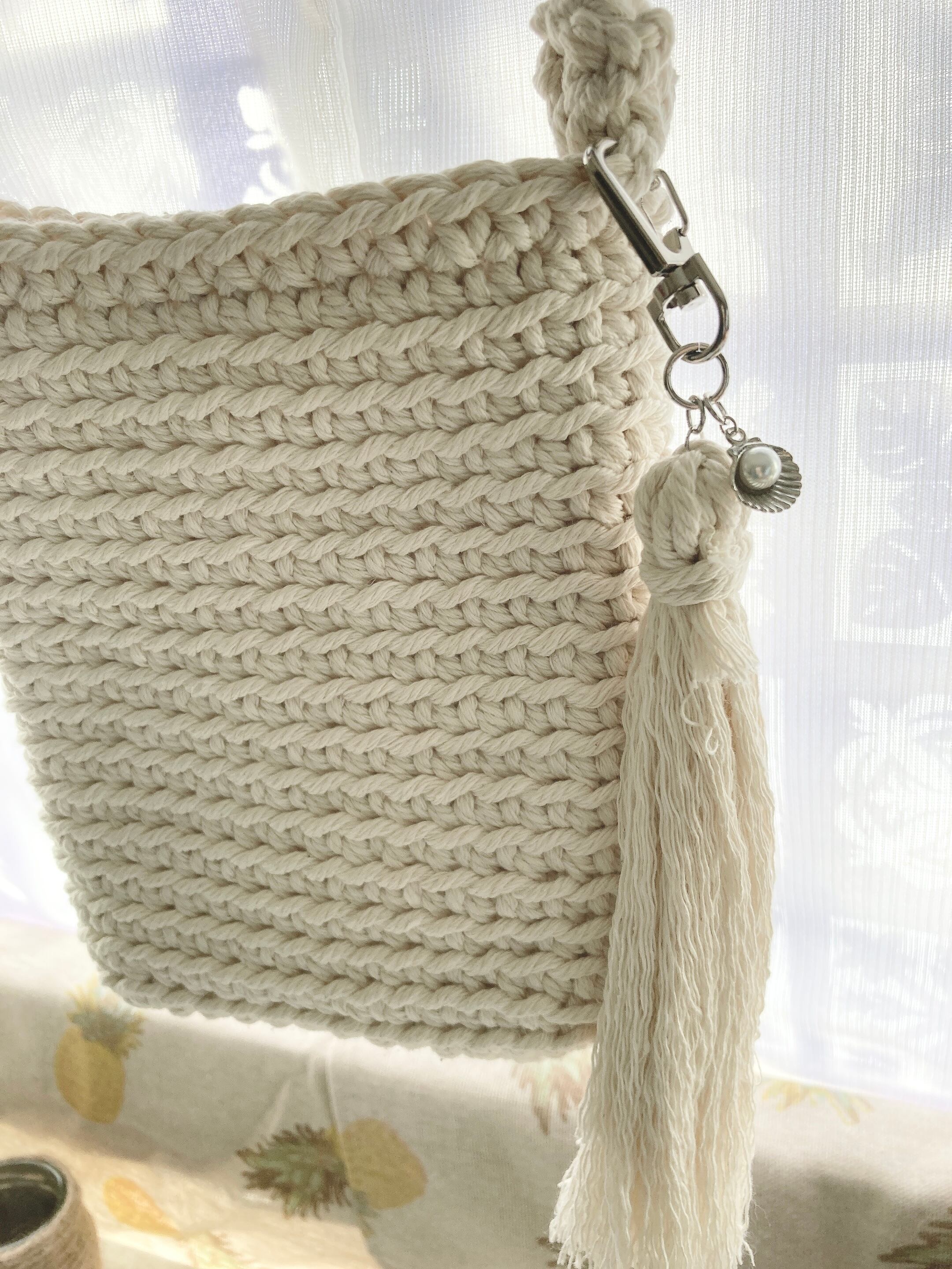 マクラメのポシェット(タッセルシェルチャーム付き)