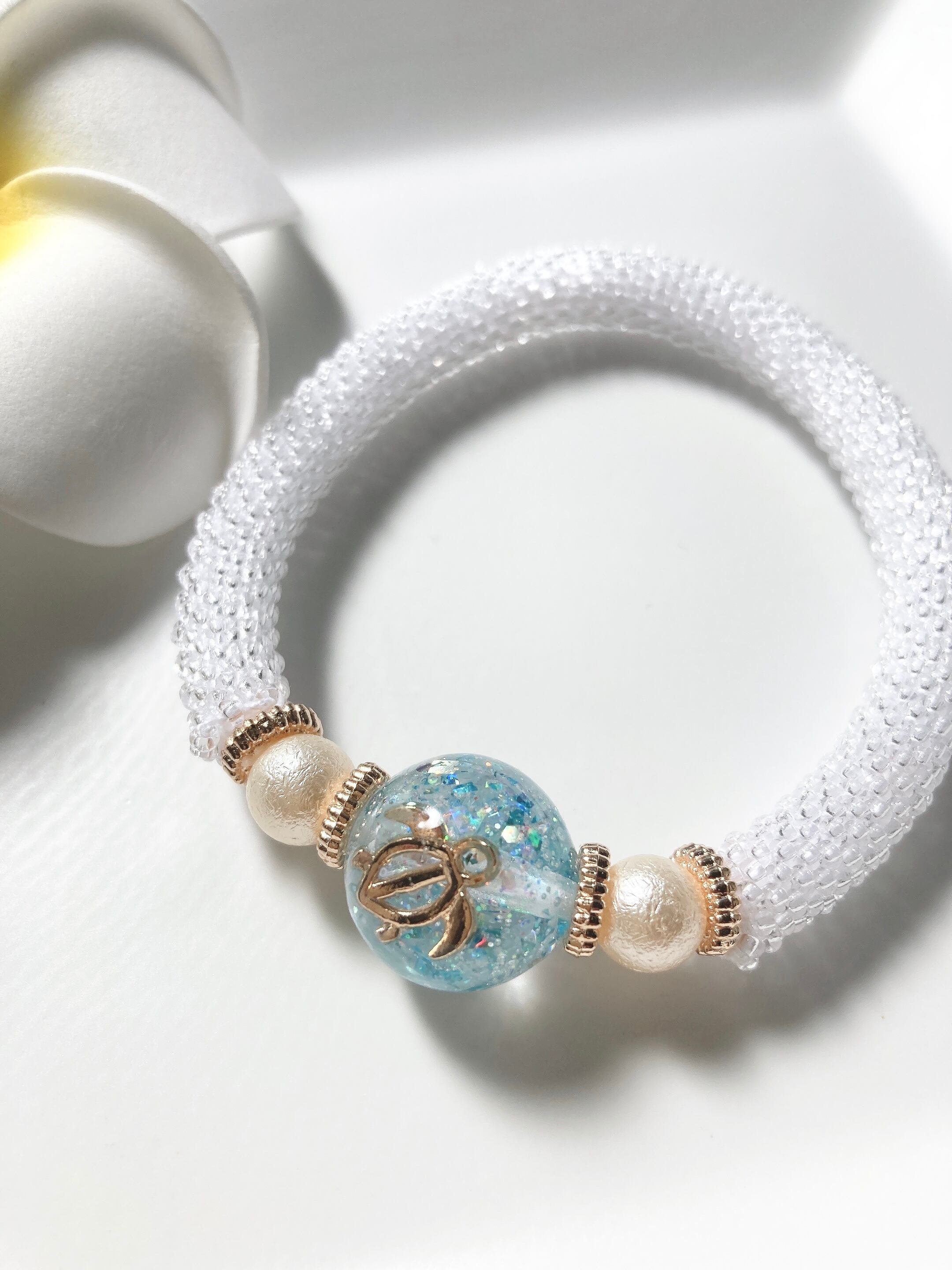 ビーズクロッシェのブレスレット(ホヌブルー) | yoyomi(ハワイアンキルト)
