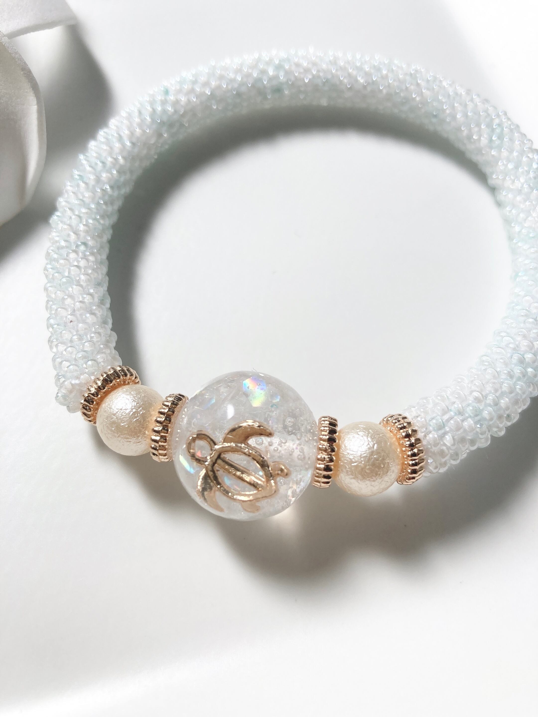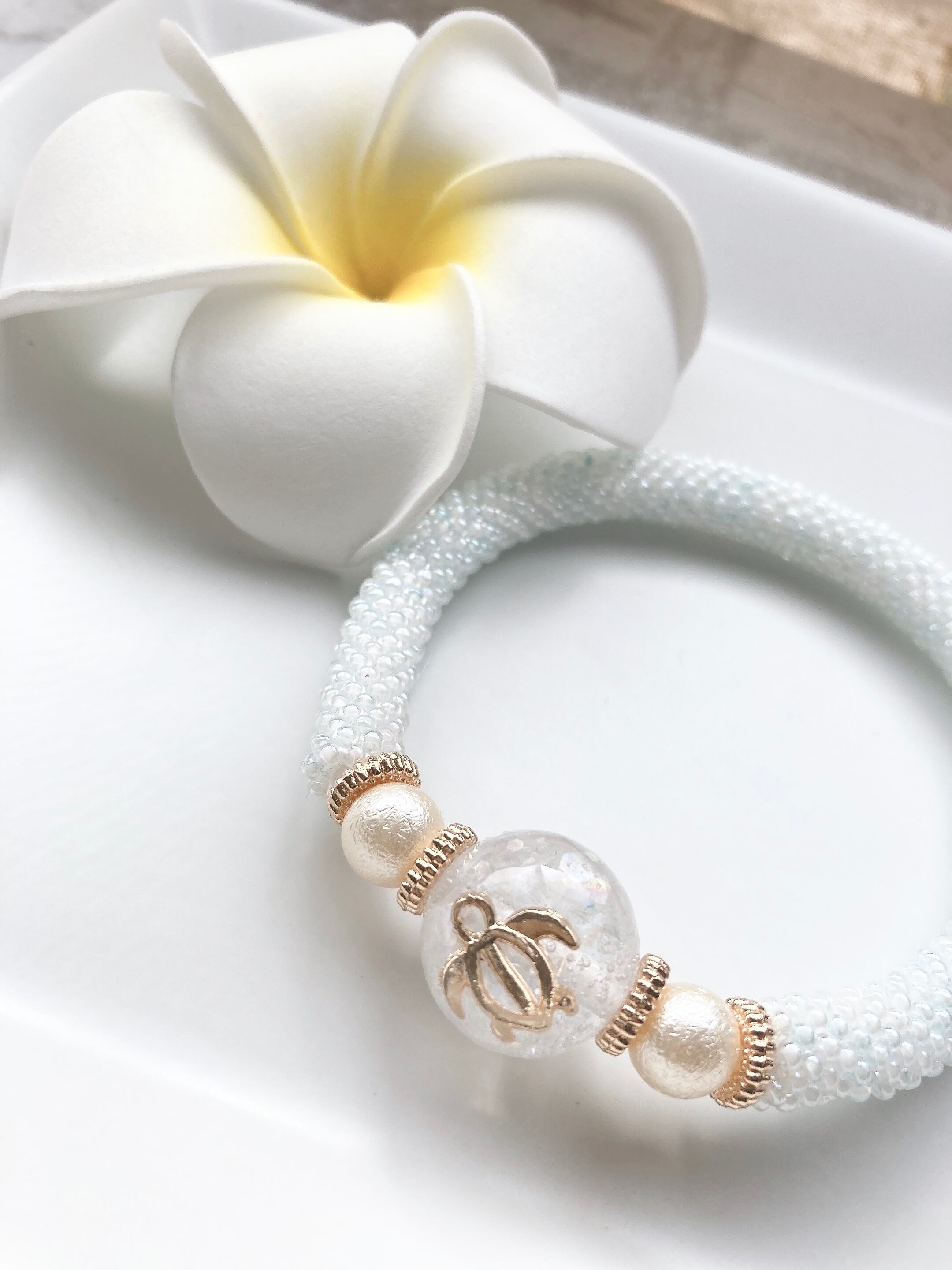 ビーズクロッシェのブレスレット(ホヌホワイト)