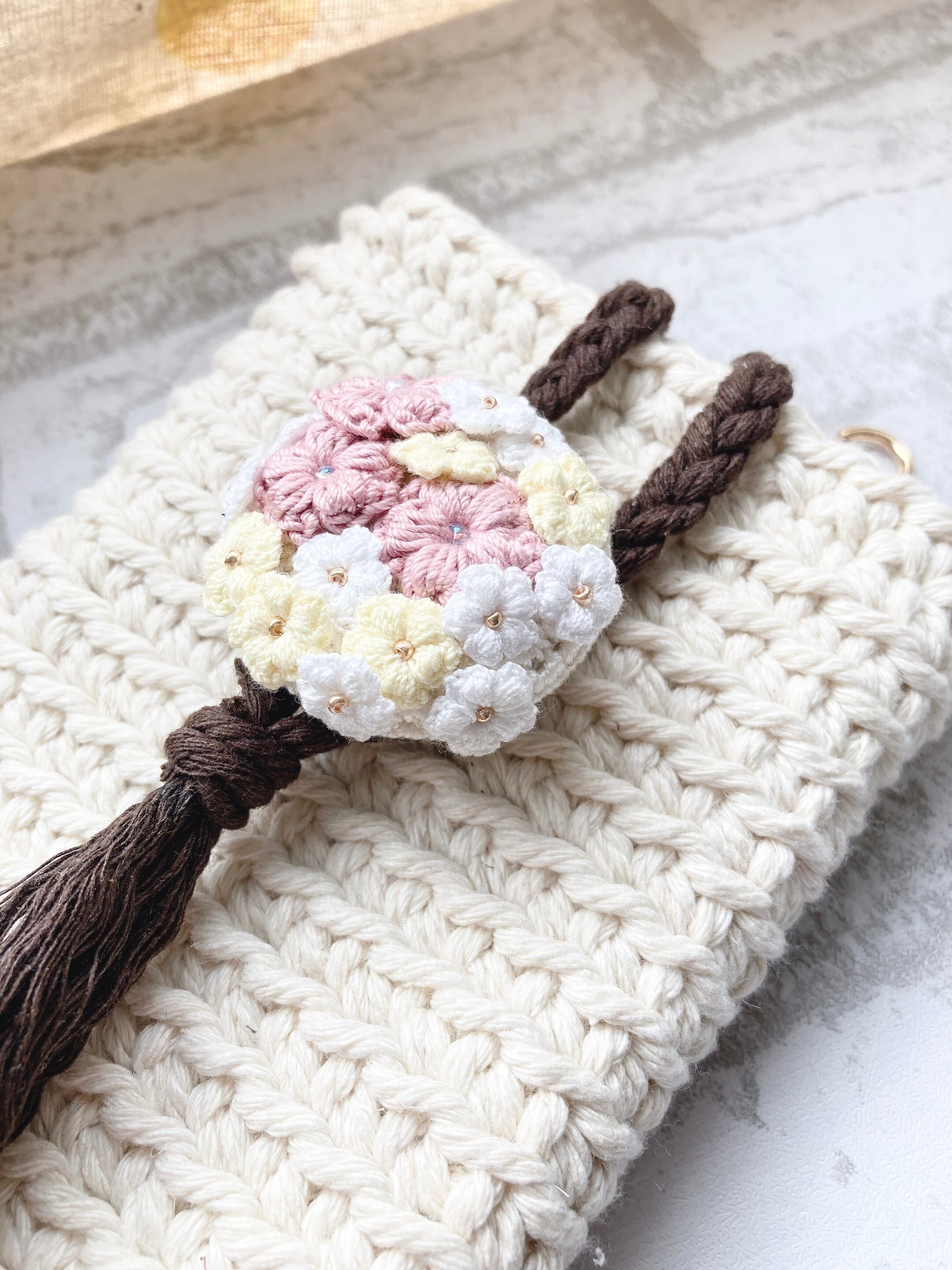 ボタンにはレース糸で編んだ小さなお花が咲いています^ ^
