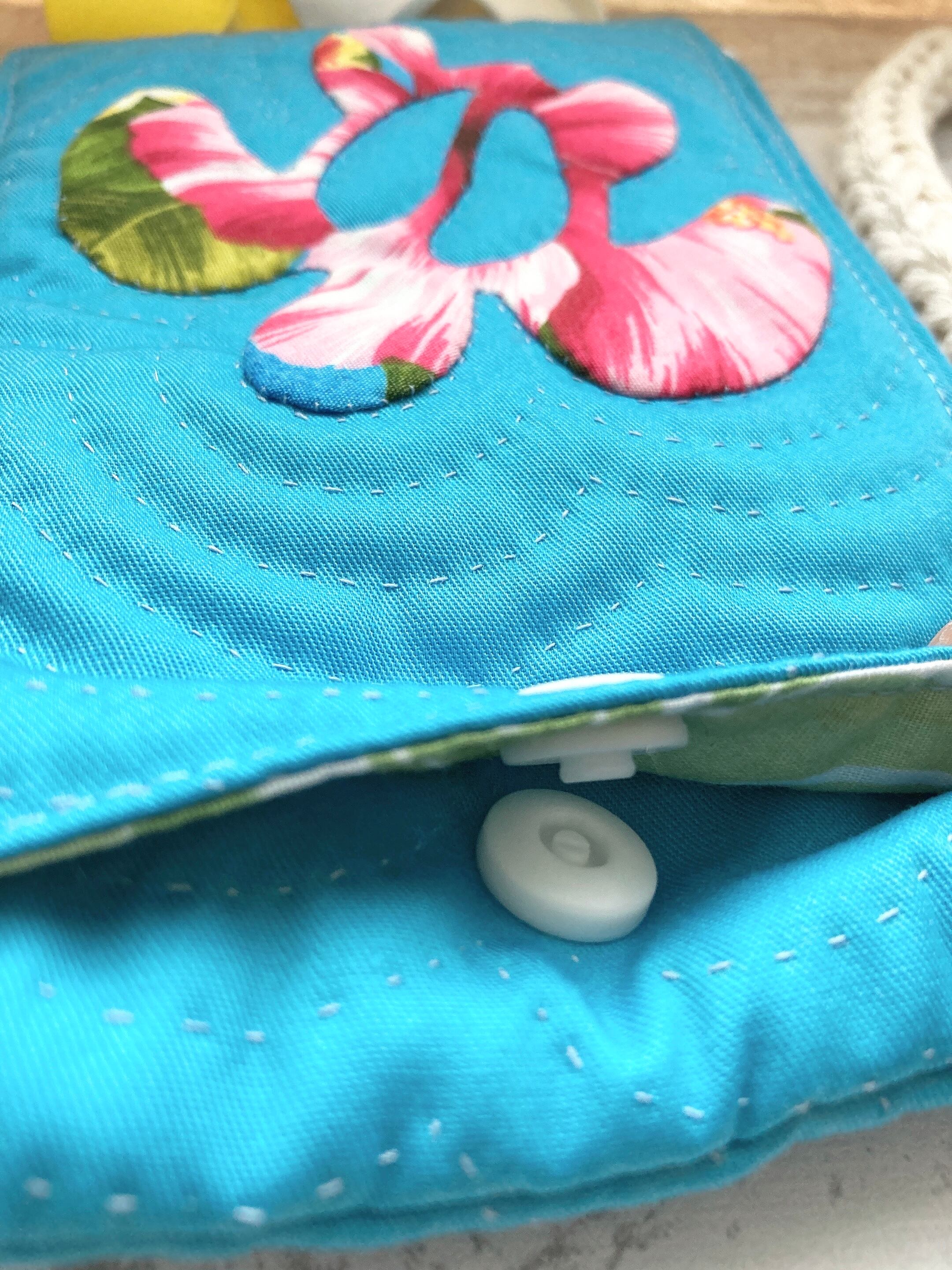 ちょっとした物が入るポーチとスマホが入るポケットがあります。