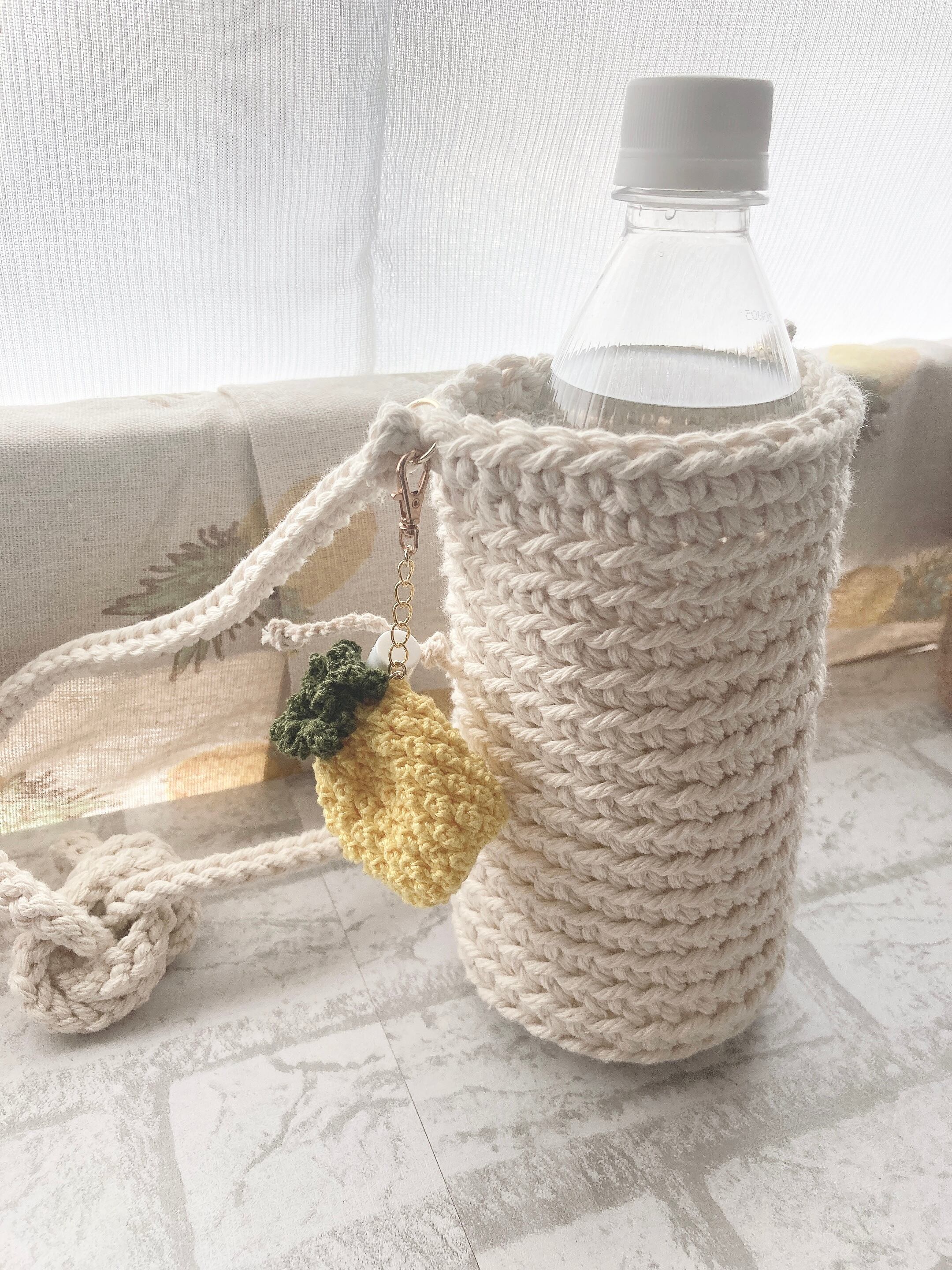 マクラメのペットボトルケース(パイナップルのキーホルダー付き)