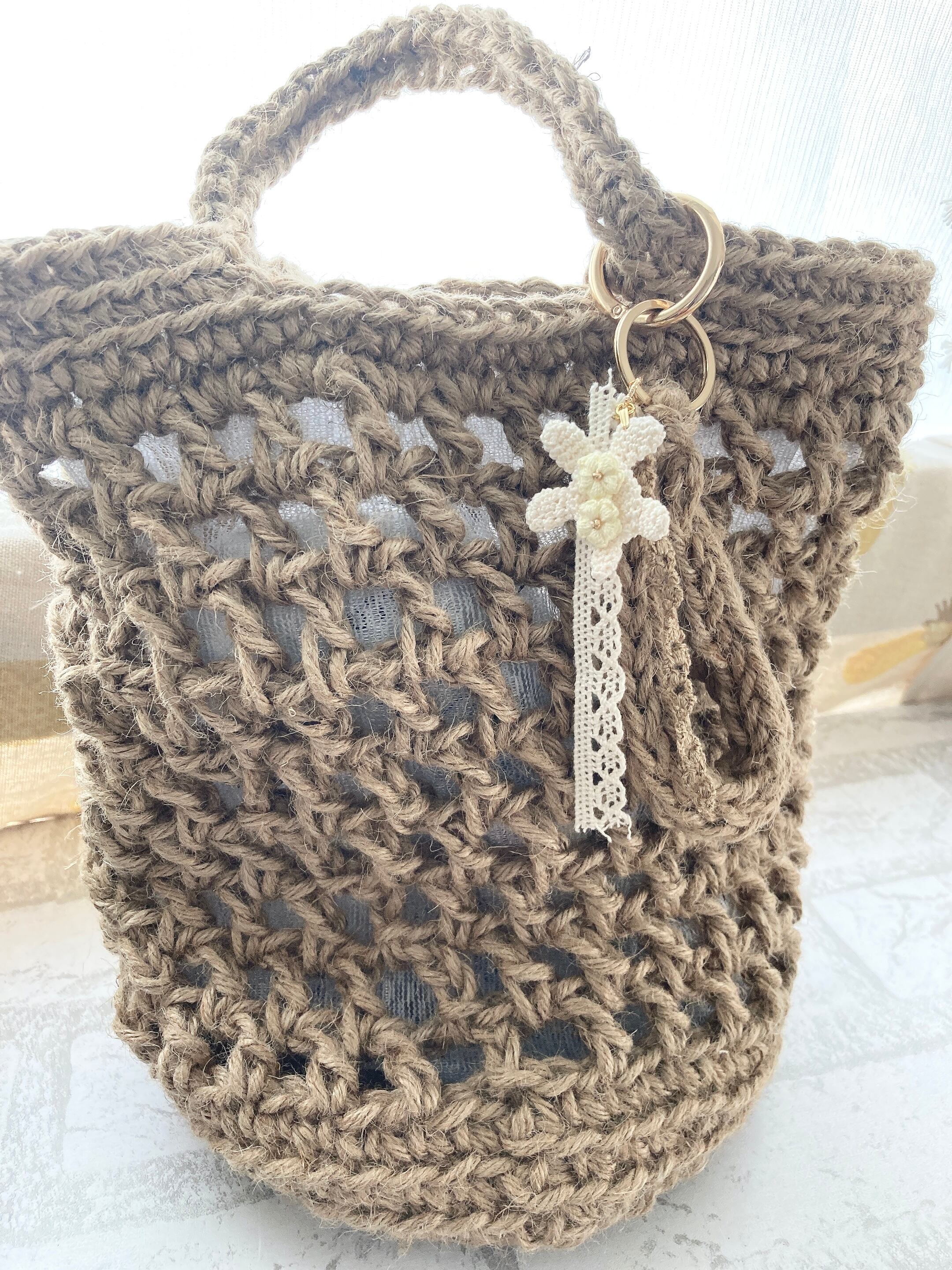 麻紐で編んだサマーバックです♪