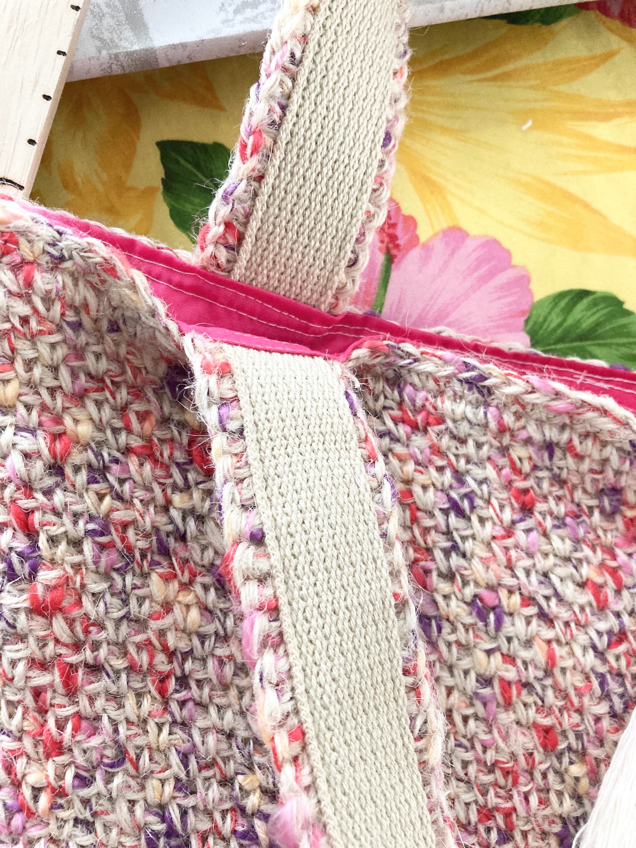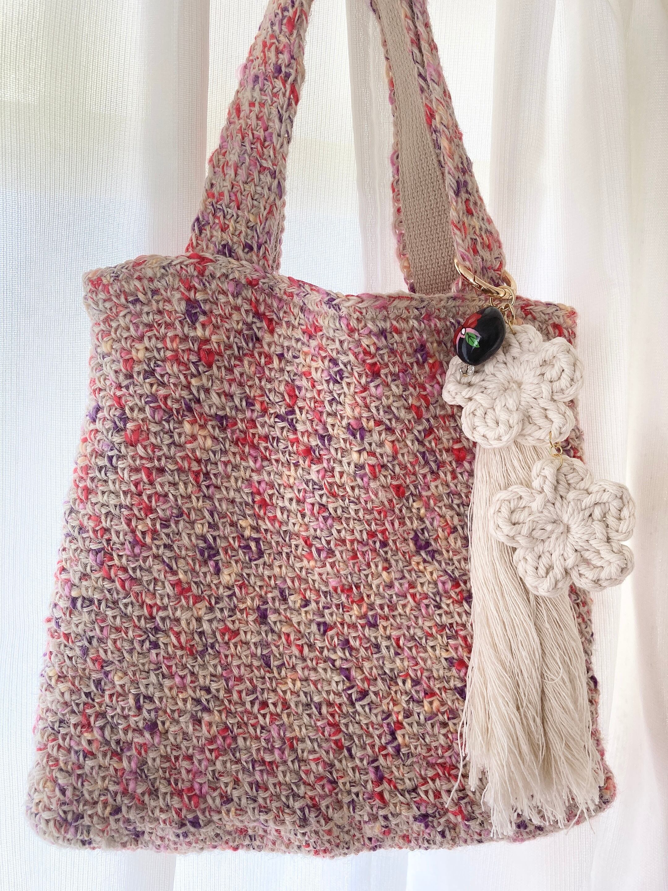 麻紐とアクリルのMIX糸で編んだサマーバックです♪