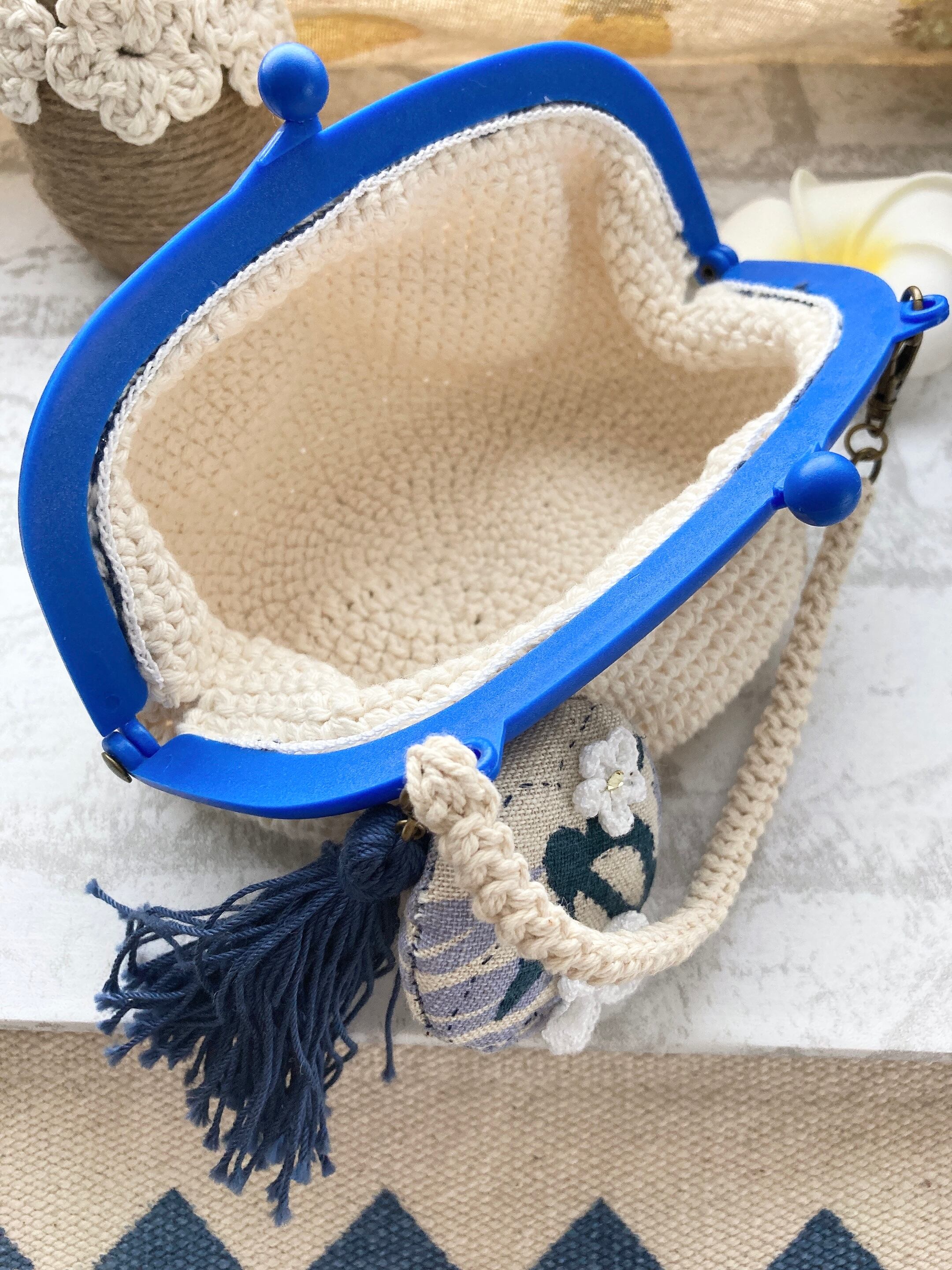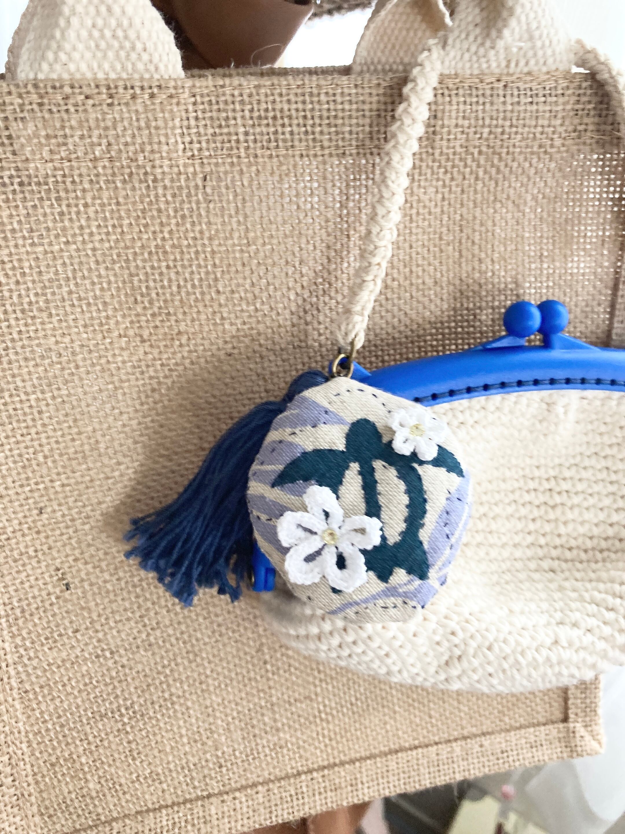 がま口ポーチ(ホヌ柄チャームブルー)