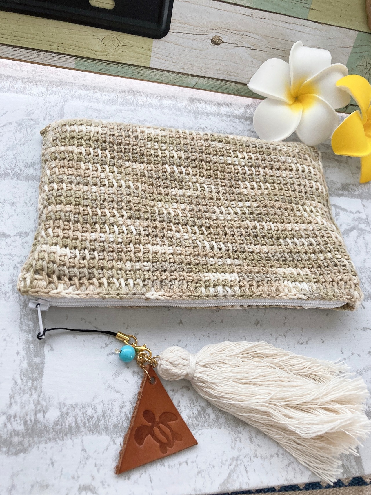 ファスナーにはホヌ柄革とタッセルが付いてます。