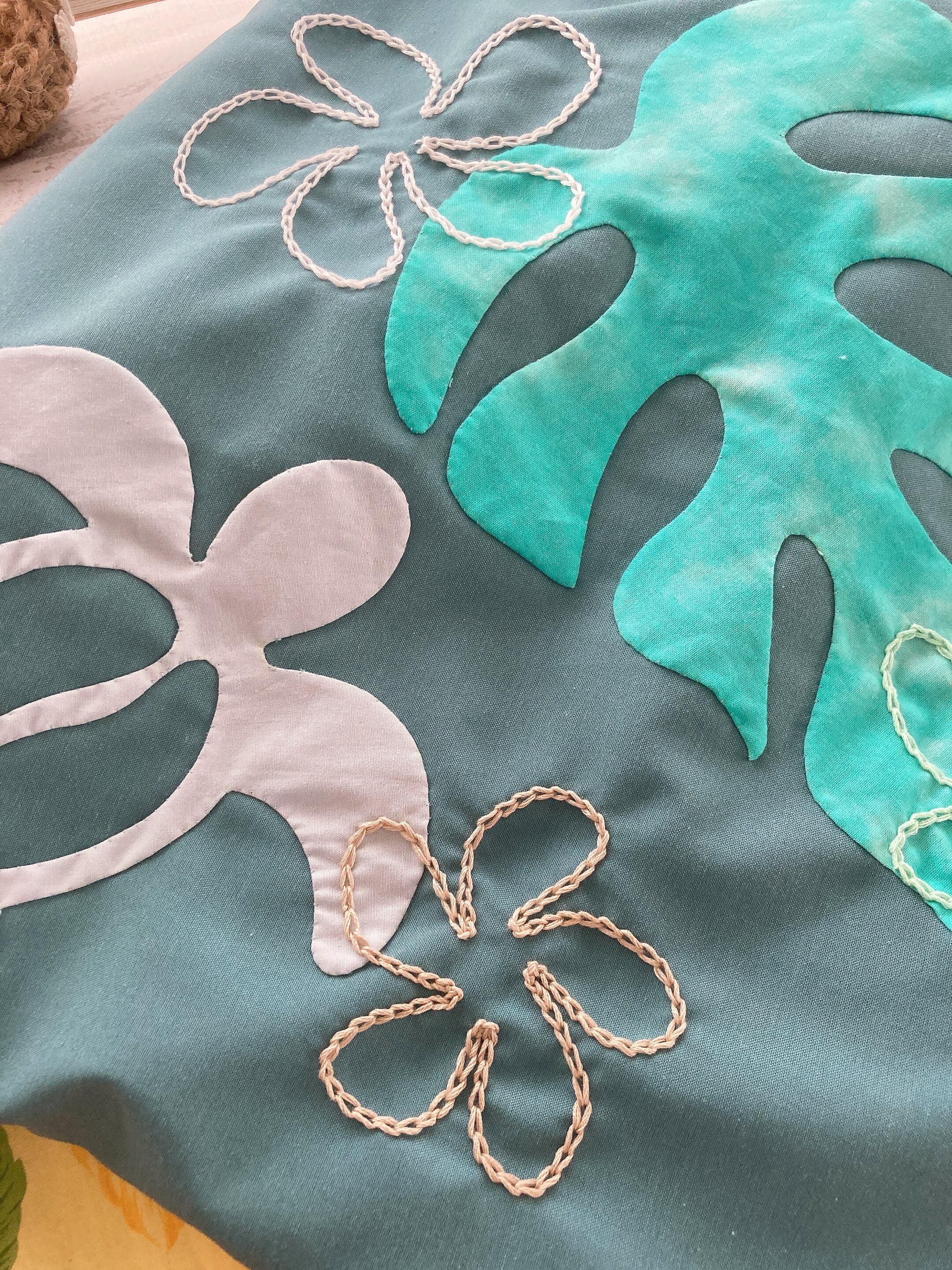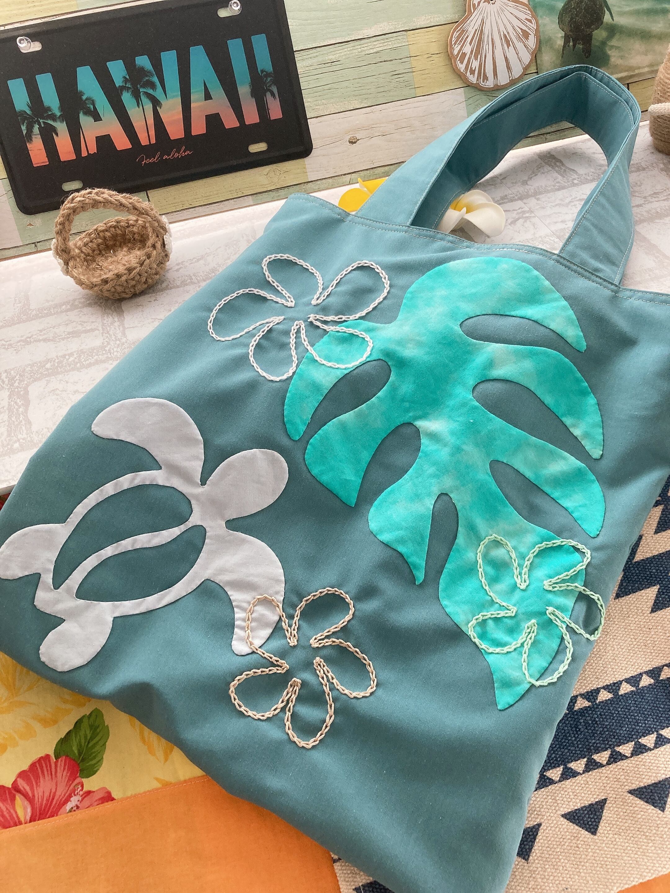 ホヌ、モンステラ、お花モチーフのタヒチアンキルトバックです。