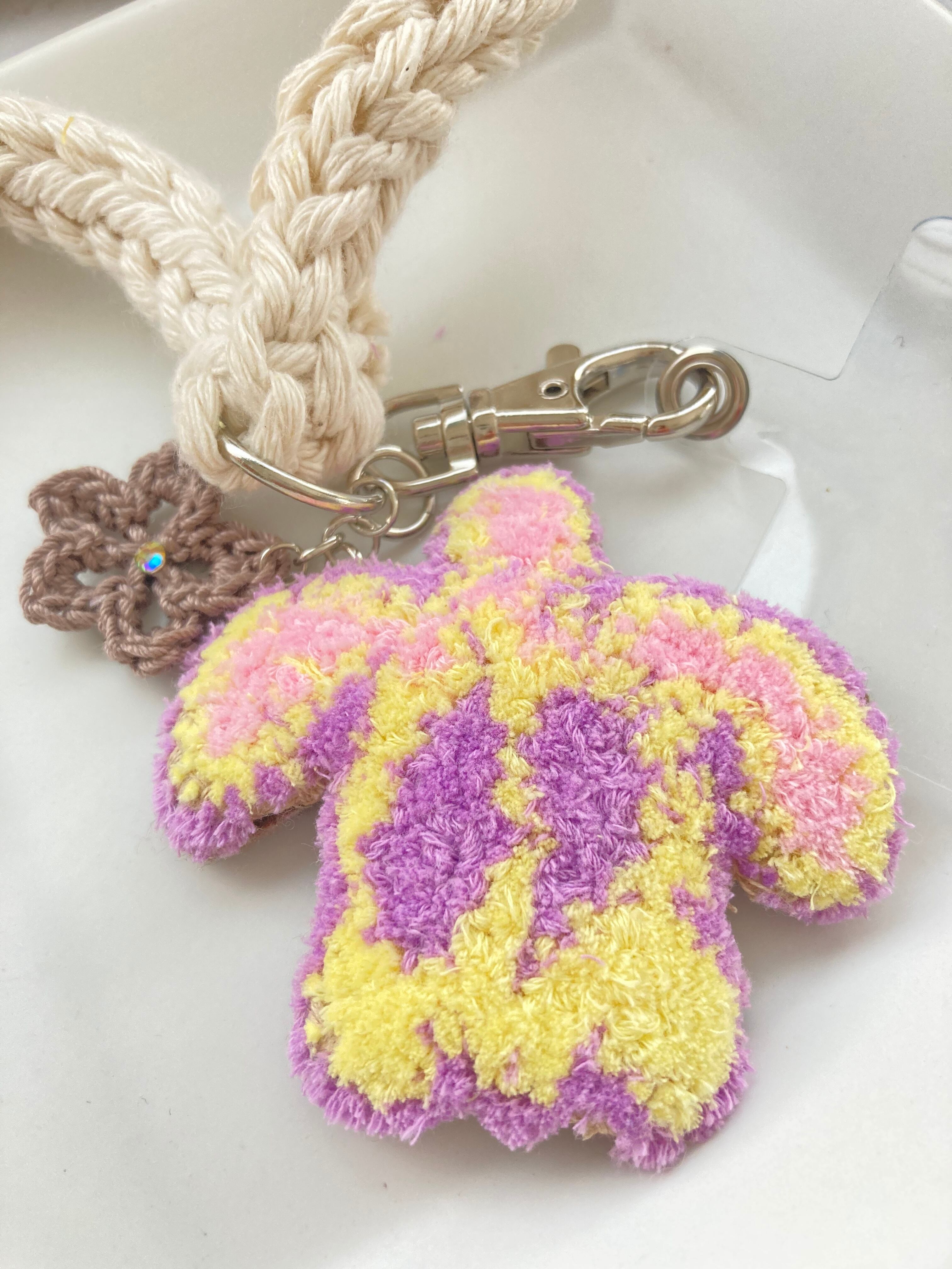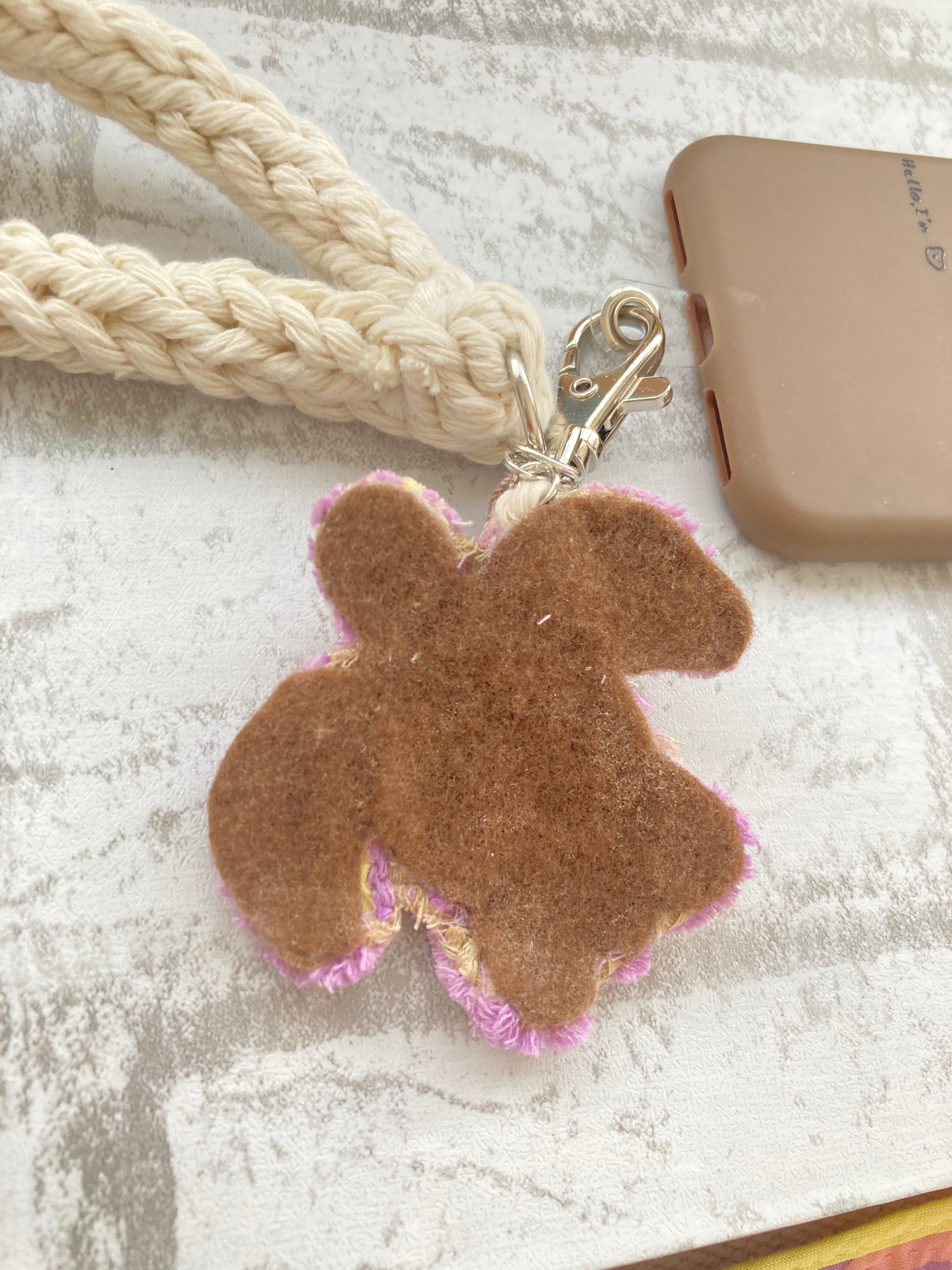 紐はマクラメで編みました。