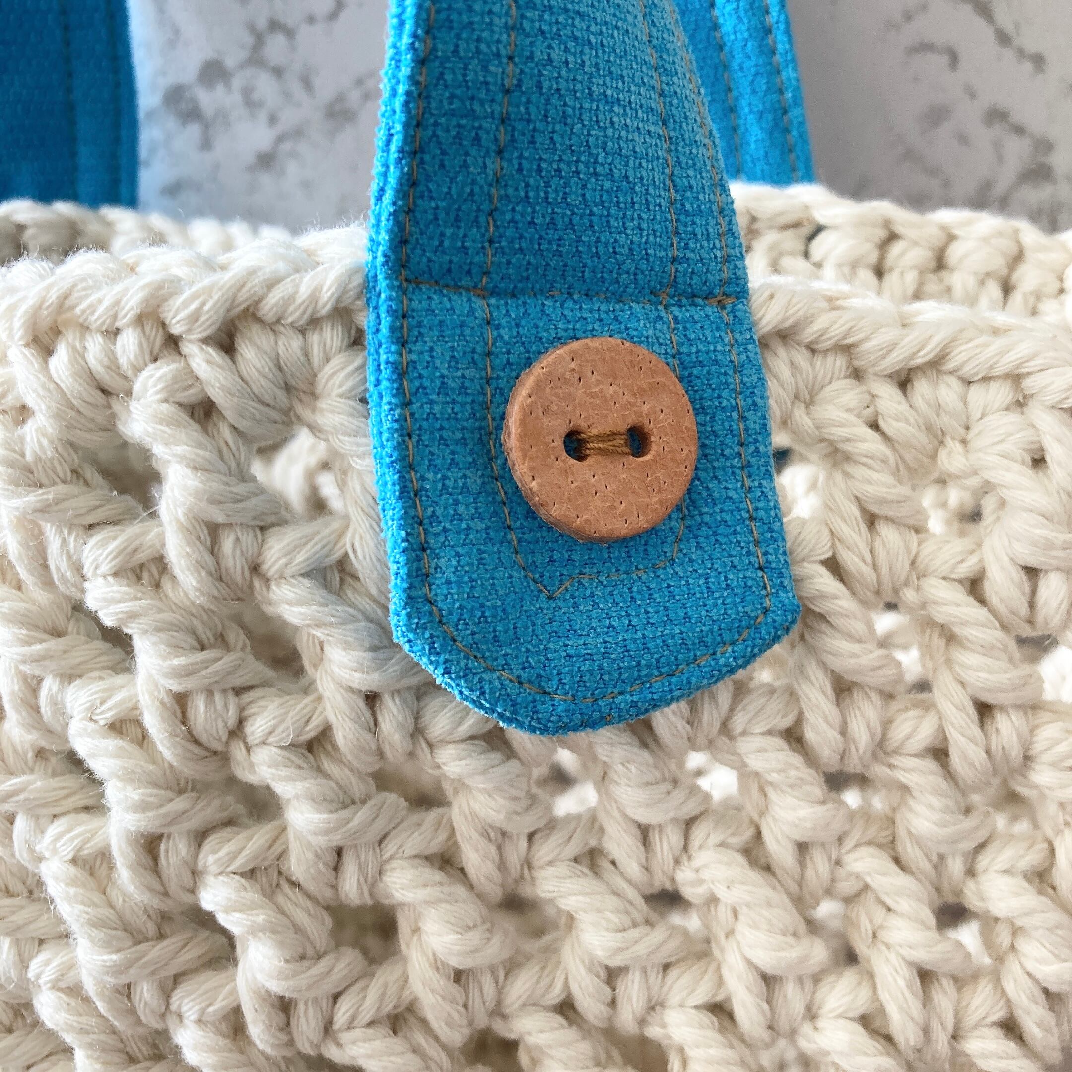 持ち手には革の飾りボタンが付いてます♪