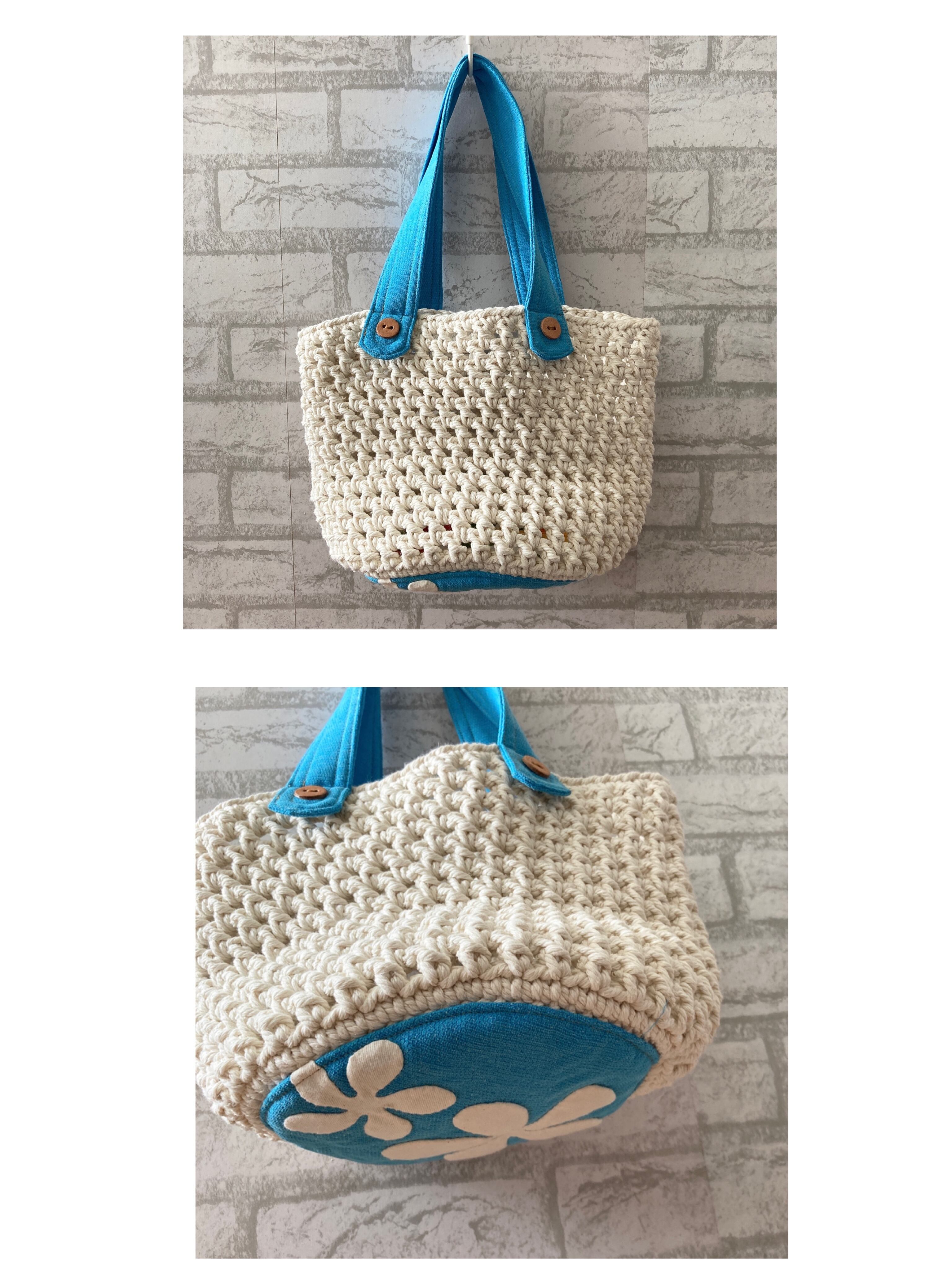 花モチーフのハワイアンキルトの底とマクラメで編んだ側面のmixバックです。