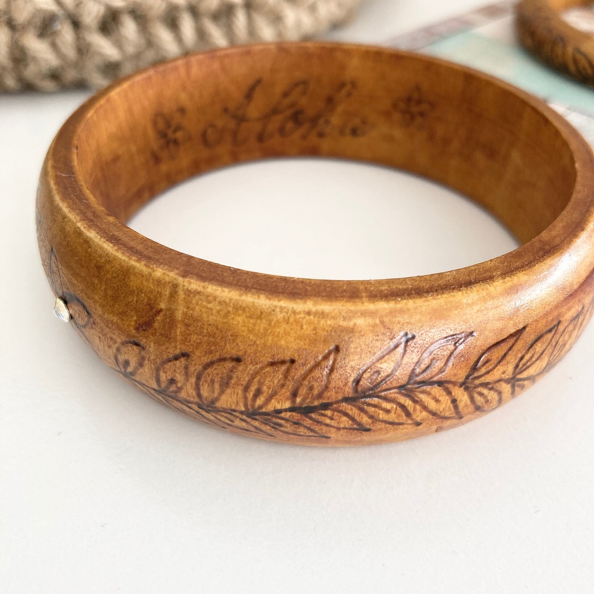 ウッドバーニングで描いたバングルです。