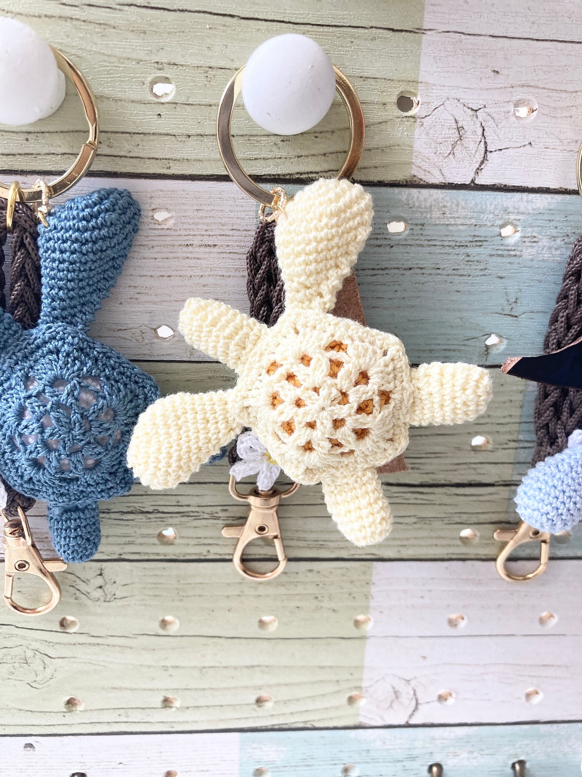 レース糸で編んだホヌのキーホルダー(黄)